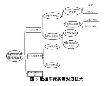 綜上, 本文論述的實(shí)用數(shù)控車床實(shí)用對刀技術(shù)能有效地提高零件的加工精度, 方便操作人員合理地選擇刀具, 對實(shí)際生產(chǎn)具有重義. 全文的知識框架如圖6所示: