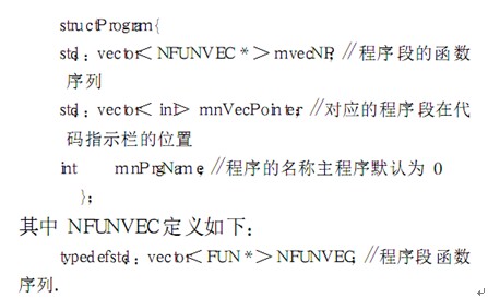 數控代碼在編輯好后存盤, 并通過了錯誤檢查,此時計算機并不能識別,需要將其轉化為相應的內容以供程序來識別[ 3 ]. 對于發現的錯誤給出相應的提示,包括: 錯誤的詳細信息、錯誤所在編輯其中的位置. 用鼠標雙擊改錯誤信息,可到達相應的行. 具體實現采用的方法是: 建立一組結構體來記錄數控指令的相關信息,按照數控指令的格式,把此序列按程序段和程序的格式來存儲. 即一個程序是由幾個程序段序列組成,程序段則是由數控指令序列組成.結構體如下: