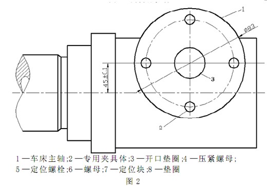 首先采用法蘭盤裝夾工件進行外圓及端面加工, 特別要注意保證工件基準面的加工精度。
