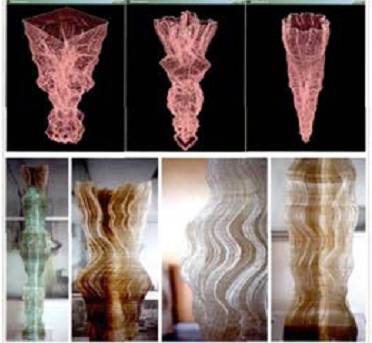 感性選定某個柱體形態后,可以進行數據導出與加工的過程。鑒于在形體生成的過程中采用的是切片疊壘的方法,故實際加工的時候也選擇切片加工、疊壘擬合的方式。