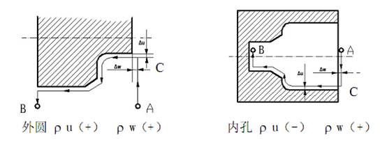 A-B之間必須符合X軸Z軸方向單調增加或單調減小。起刀點A和退刀點B必須平行。