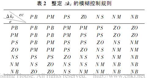則整定 $ki 模糊控制規(guī)則如表2 所示.