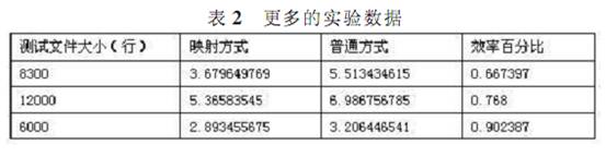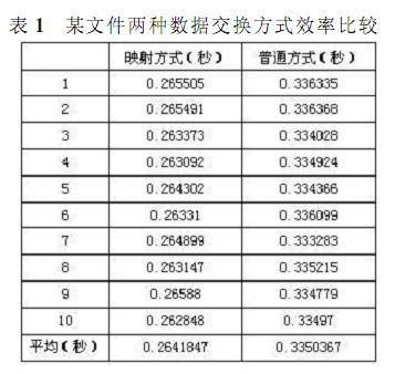 從表 2 能看出 內(nèi)存映射方式有較大優(yōu)勢