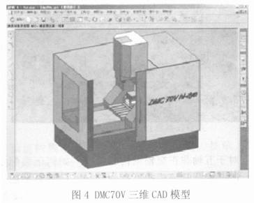 根據獲取的機床相關參數資料, 選擇UG CAD 作為建模工具, 對DMC70V 機床主要運動軸、機床臺面等進行建模, 構建的DMC70V 機床三維CAD 模型如圖4 所示.