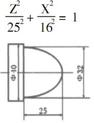 任務(wù) 1 : 編寫下圖半橢圓的加工程序, 毛坯為5 40 @ 100的 45鋼, 其余部分的程序省略。橢圓方程為: