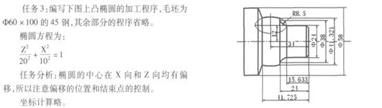 任務(wù) 2 :編寫下圖不完整半橢圓的加工程序, 毛 坯為 5 40 @ 100的 45鋼,其余部分的程序省略。