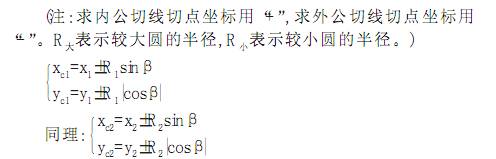 基點是指各幾何元素間的聯(lián)結(jié)點。而直線與圓弧是構(gòu)成零件輪廓的最基本的幾何元素。與直線或圓相關(guān)的基點計算,包括直線與直線相交、 直線與圓相交或相切、 圓與圓相交或相切, 以上基點計算通常均需采用聯(lián)立方程求解的方法完成, 而作為二次曲線的圓方程, 聯(lián)立求解則過程甚繁。改進的方法是, 若能利用幾何元素間的三角函數(shù)關(guān)系, 則可避免求解聯(lián)立方程。為了確定幾何元素間的三角關(guān)系, 學生必須先正確作圖, 處理過程很繁。這樣就產(chǎn)生了以下要說明的簡便計算方法, 學生用計算器即可迅速完成計算。類型分別介紹如下:類型1.直線與圓相切求切點坐標